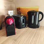 - ❓В этой квартире оборудована кухня?Да, в этой квартире есть оснащённая всем необходимым кухня, в которой предусмотрели кофеварку, духовку и кухонную утварь.